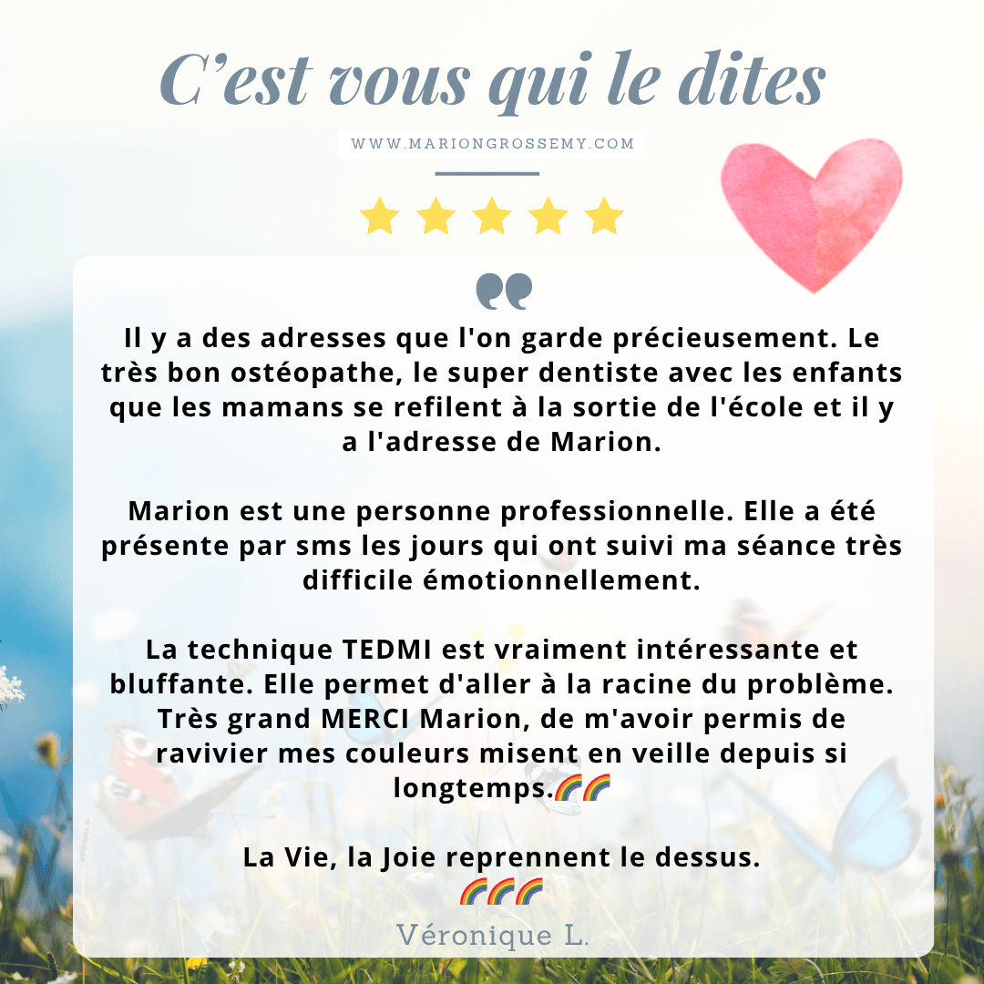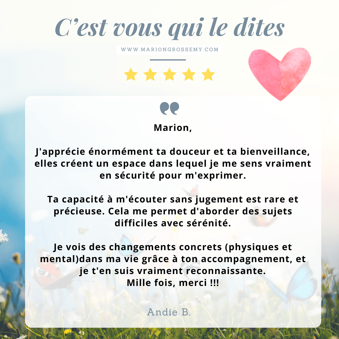 Je suis Marion Grossemy, praticienne en libération émotionnelle et traumatique.