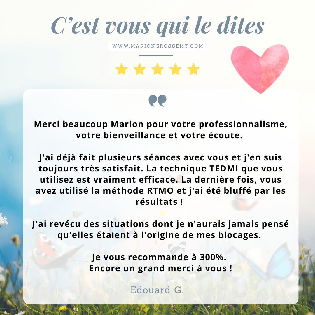 TEDMI© (Technique d'Effacement Définitif des Mémoires émotionnelles Inconscientes) est une approche qui permet d’identifier et de libérer certaines mémoires émotionnelles inconscientes qui restent actives en profondeur et continuent d’impacter votre présent.